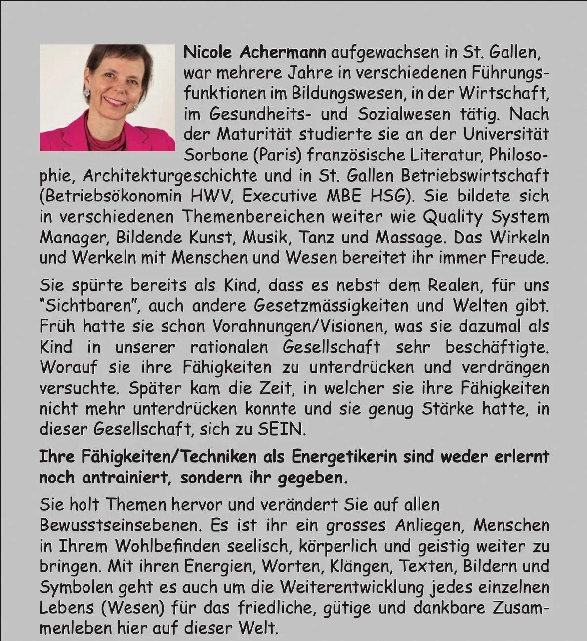 Mehr Info zur Nicole Achermann: www.ajesa.ch und www.nicole-achermann.ch