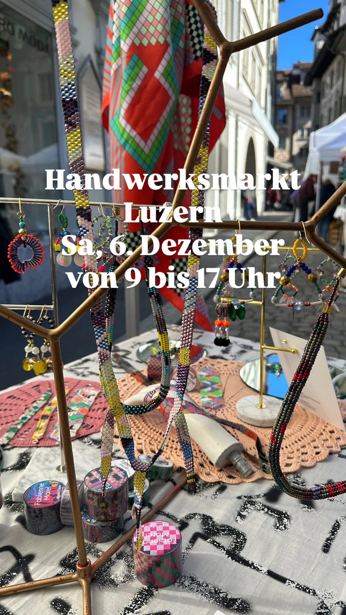 Luzerner Handwerksmarkt Dezember Samstag, 6. Dezember 2025 9:00 AM 5:00 PM 09:00 17:00 Handwerksmarkt Luzern Weinmarkt Luzern, LU, 6004 Schweiz (Karte) Google Kalender ICS Luzerner Handwerksmarkt Am Samstag ,6. Dezember bin ich mit einem Stand am Luzerner Handwerksmarkt am Weinmarkt dabei.Ich freu mich sehr, in meiner Heimatstadt Teil dieses schönen Markts zu sein!
