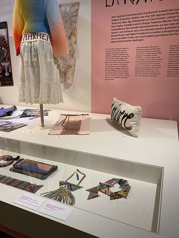 If you love textiles, fashion and craft you have to visit this beautiful curated exhibition of Atelier Zanolli. It shows their fantastical world full of graceful and cheerful products was created in Zurich.